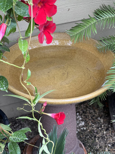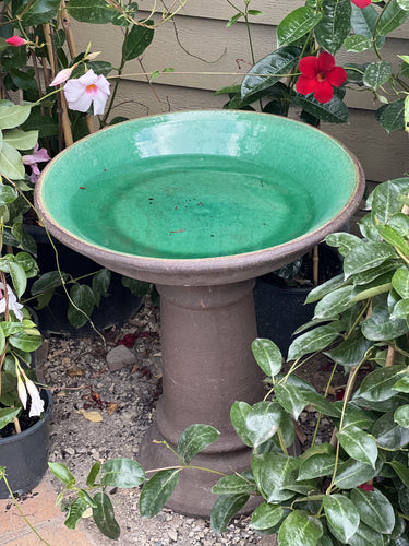 Silk Road Rough Brown Clay + Fireworks Green Birdbath